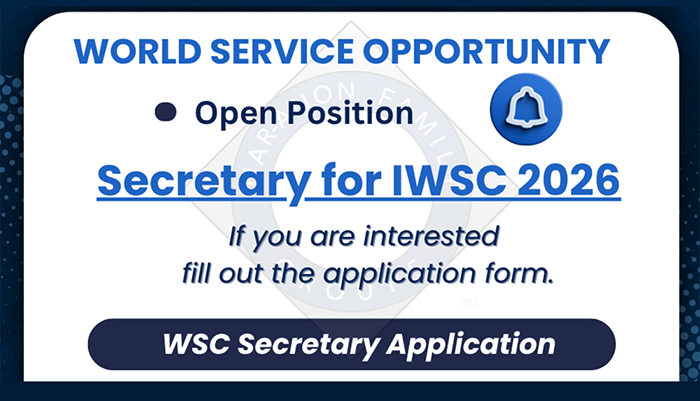 The World Service Board is pleased to announce that Marie T., former World Service Board Chair, will be the new Executive Director of the Nar-Anon World Service Office. Marie started on July 7, 2025. We thank Cathy K. for her many years of dedicated service and look forward to working with Marie as we continue to grow and strengthen our fellowship.
